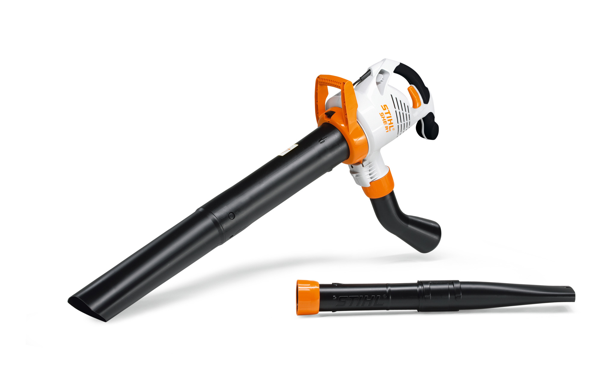 The electric vacuum shredder can also be used as a blower as standard. The SHE 81 can be converted without tools to switch between vacuum and blower operation. The STIHL SHE 81 can also be adapted to suit different tasks thanks to its infinitely variable speed control. The standard flat nozzle can be replaced with an optional curved flat nozzle for even more efficient use close to the ground. An optional STIHL gutter cleaning set is also available for removing dirt and leaves from gutters.